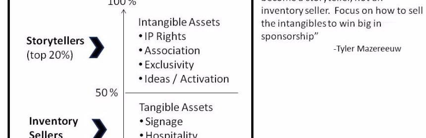 After 18 years of experience working with a number of organizations and several top sponsorship sales executives, I’ve narrowed it down to a pretty simple matrix that articulates what the top 20% do differently. The best sponsorship development executives focus on creating relevant stories that resonate with brands.   Sure, it’s easy to sell the obvious…warm, cozy, low-risk assets that are simple to quantify